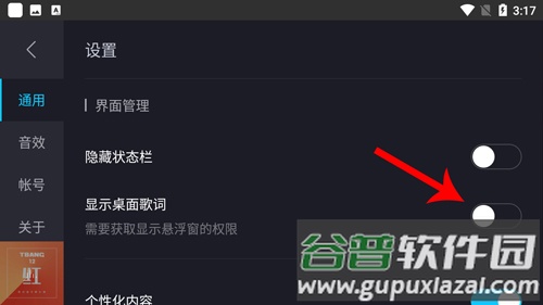 2、进入通用设置,找到桌面显示歌词选项并开启该功能。
