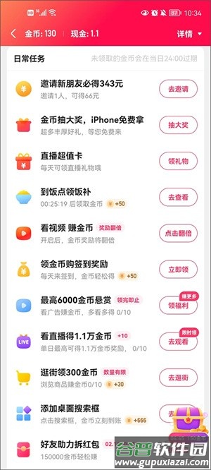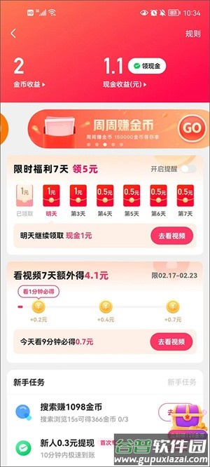 4、除了直接领取红包,用户还能通过完成日常任务来提高现金收益