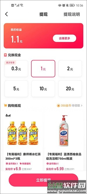 6、提现采用阶梯限额方式,用户提现一元后,下次只能提现五元、十元等更高金额