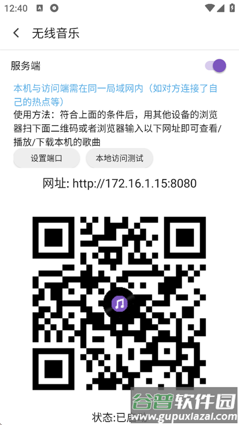 3.使用其他设备扫描生成的二维码,或在浏览器地址栏输入显示的网络链接;