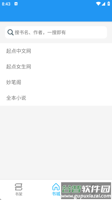 3、打开后默认进入书城主页,页面中列出多个合作书源站点,包括起点中文网、起点女生网、妙笔阁、全本小说等;