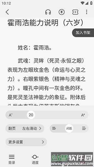 3、支持将小说加入个人书架,自动保存阅读进度,下次打开可继续阅读。