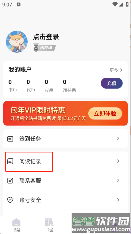 1、进入“我的”页面,找到“阅读记录”选项并点击进入。