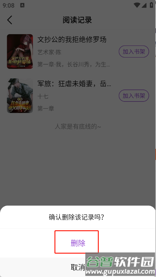 2、在阅读记录列表中,长按需要删除的某条记录。