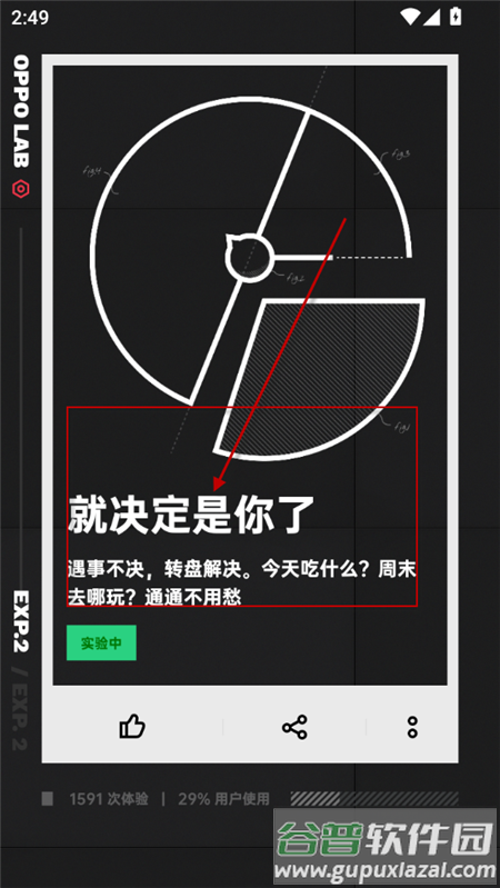 1、启动手机上的OPPO LAB应用,在首页向下滑动屏幕,找到并点击就决定是你了功能插件;