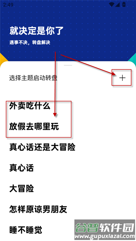 2、进入后可以选择系统预设的转盘主题,或者点击界面上的加号图标创建全新主题内容;