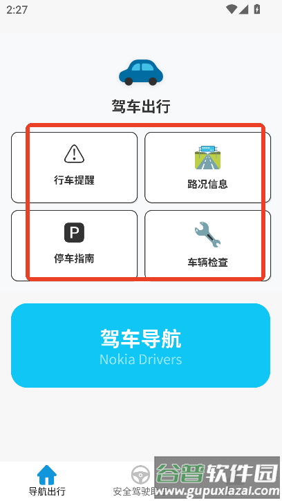 点击驾车导航输入终点,系统自动规划路线并开始导航;