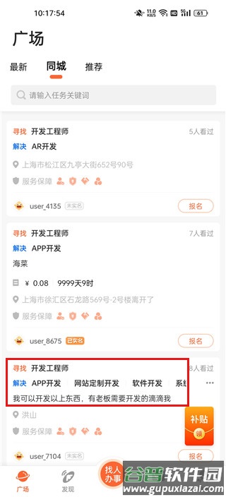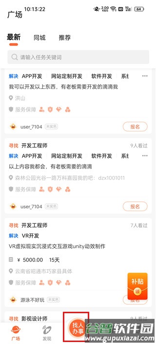 找人办事:用户发布家政、维修或设计等需求后,系统自动推荐合适技能人才接单;