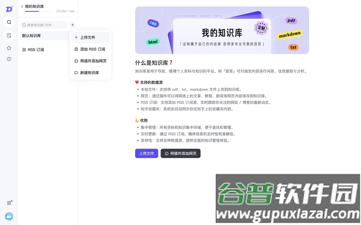 平台同步推出知识库功能,整合本地文件上传、网页收藏、RSS订阅及知乎收藏夹等模块,支持用户使用DeepSeek-R1模型对学术论文、技术文档、网页内容及知乎问答等材料进行智能解析与知识管理。
