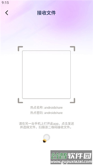 2、成功连接设备后会显示接收二维码,使用另一部手机扫码即可开始接收;