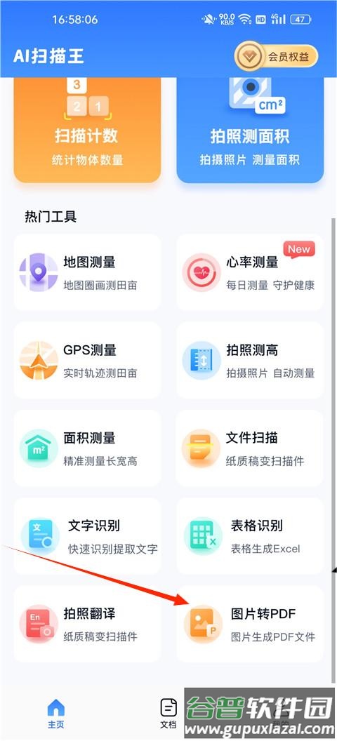 1、启动软件后,可见多种功能选项,包括地图测量、高度测试、面积测量、图片转PDF等;
