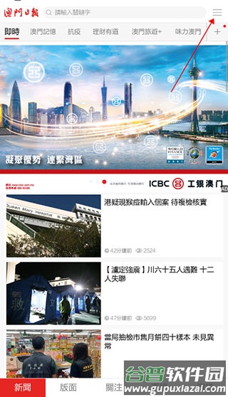 1、下载并打开澳门日报应用,进入主页面后,点击右上角的三横图标,进入个人中心;