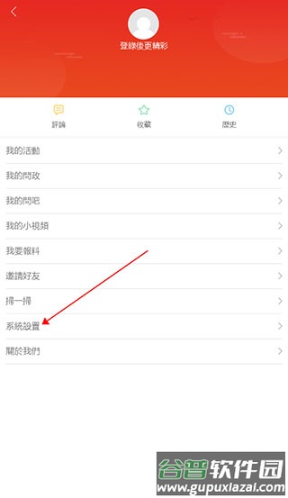 2、在个人中心页面中选择系统设置,进入设置菜单;