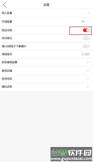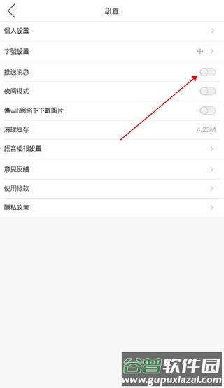 3、在设置列表中点击推送消息选项旁边的圆形按钮;