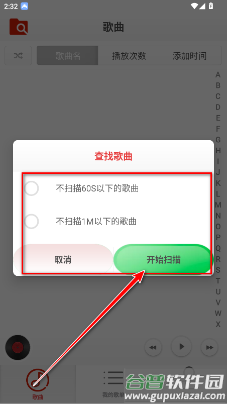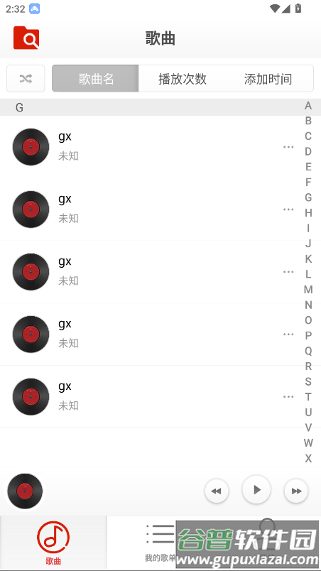 3、扫描完成后界面显示歌曲列表,点击任意歌曲即可播放。