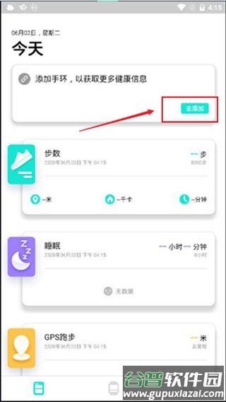 3、点击添加手环按钮开始配对,以获取更全面的健康监测服务;