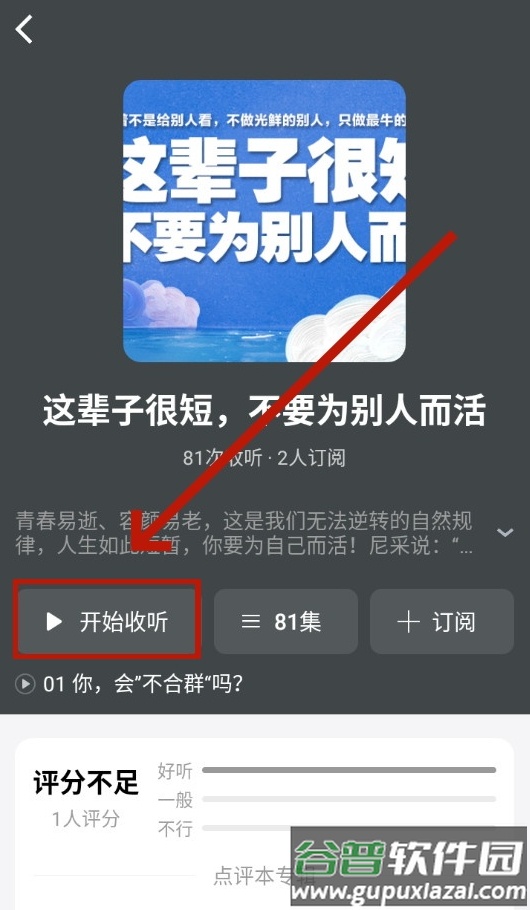 开始收听:在详情页点击“开始收听”按钮,即可进入播放页面;