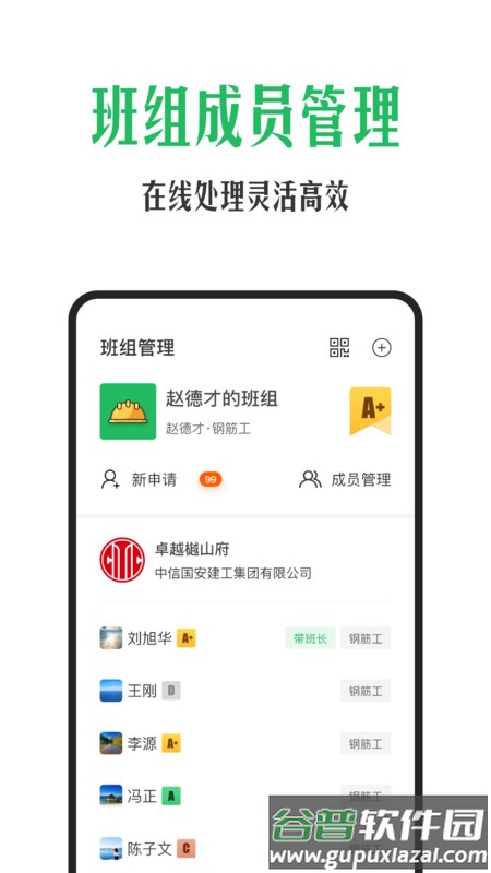 1. 班组成员管理:支持动态调整班组人员,适应多项目精准管理需求;