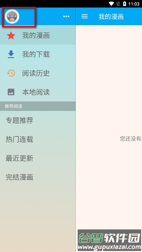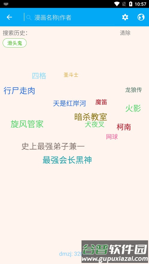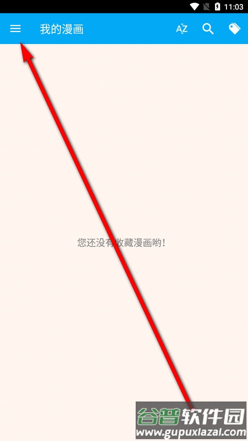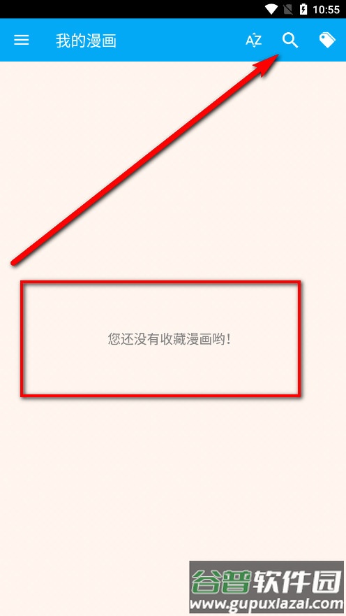 1、首次使用时软件内没有预装漫画内容,需要点击顶部的搜索按钮。