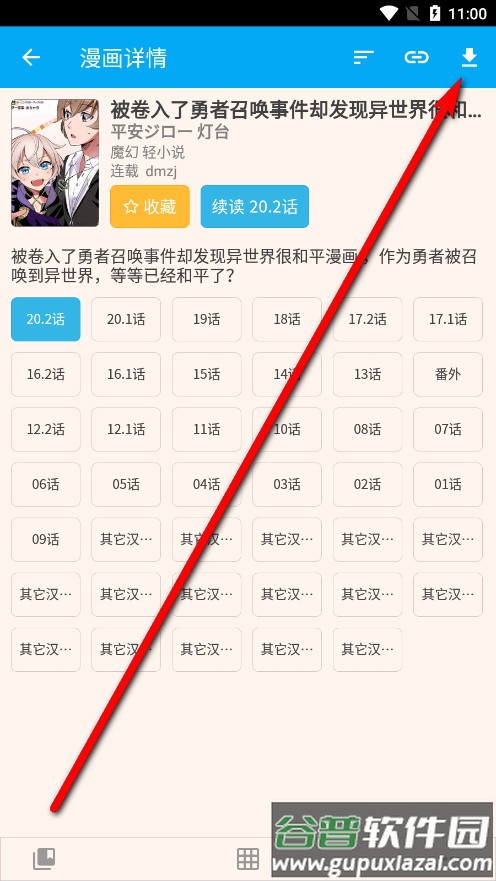 6、在漫画详情页右上角可以看到下载图标,点击进入缓存设置。