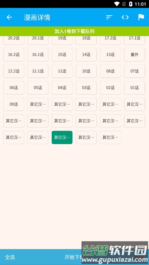 7、在章节列表界面选择需要离线阅读的章节,支持左下角全选功能。