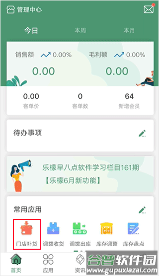 2、登录成功后,在首页找到并点击门店补货功能入口;