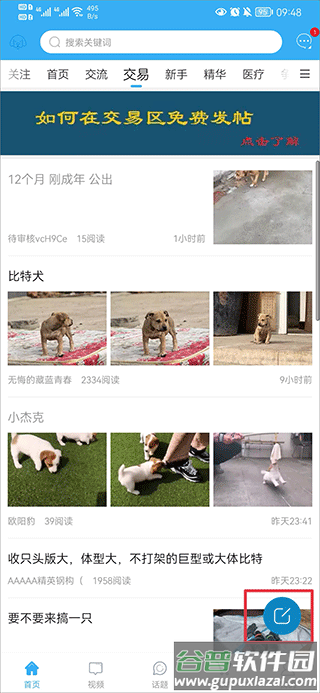 3、卖家用户点击界面右下角发布按钮创建交易帖子;