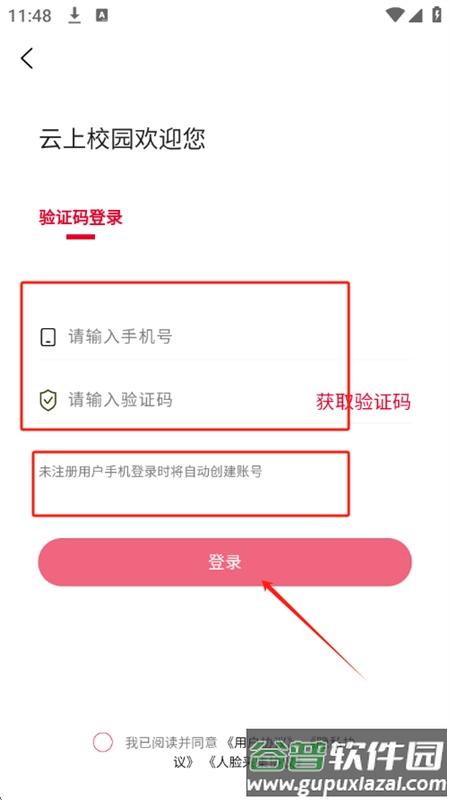 4、输入手机号码及接收的验证码,系统将自动完成账号注册与登录。