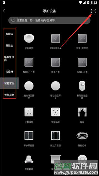 2、在设备分类列表中查找并选择要添加的设备类型,也可通过扫描设备二维码完成绑定;