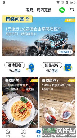 3.首页展示每周特价、新品试吃、积分商城等板块;