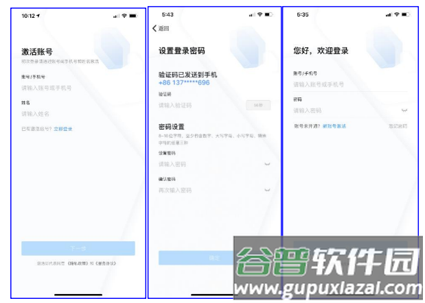1.登录操作第一步:打开秦政通应用,进入新账号激活页面,输入账号或手机号及姓名。若提示账号已激活,返回登录首页选择忘记密码进行重置;第二步:输入短信验证码并设置登录密码;第三步:返回登录界面,输入账号与密码完成激活并登录。