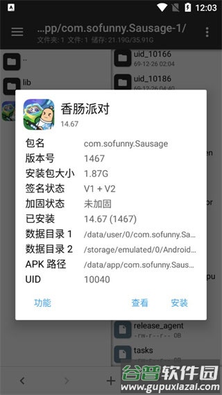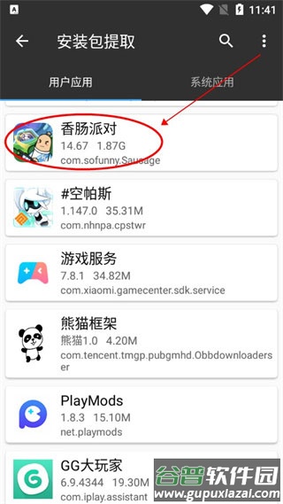 2、在应用列表中找到目标游戏,例如香肠派对,点击进入;