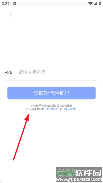 3、输入手机号完成验证,注意勾选用户协议和隐私政策。