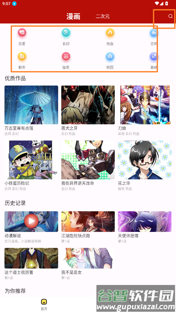 2、漫画种类很多,包括恋爱、玄幻、都市、古风等热门题材;