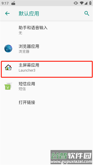 3跳转至系统默认应用管理界面,选择主屏幕应用设置;