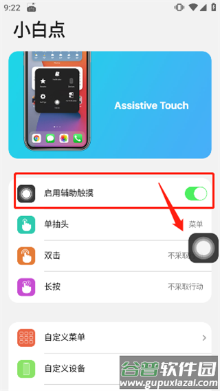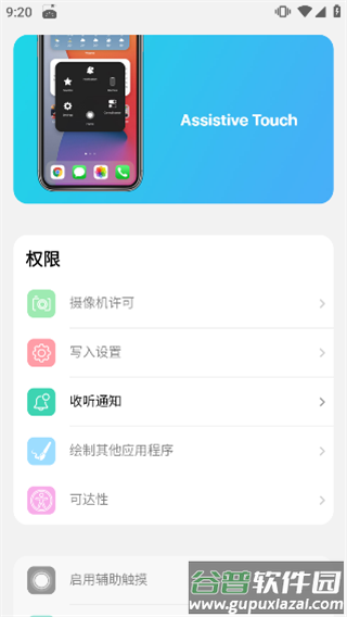 7、完成权限设置后点击开启辅助触控,即可激活悬浮球功能;