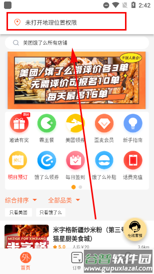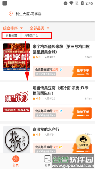 3、确认位置后向下滑动浏览附近美食,若已是美团或饿了么会员,点击分类筛选单独平台可获取更高优惠;