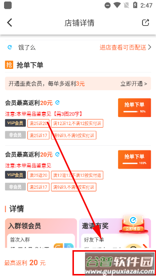 4、选定想吃的美食后,点击下方抢单按钮即可参与,成为会员还能拿到更多返利。