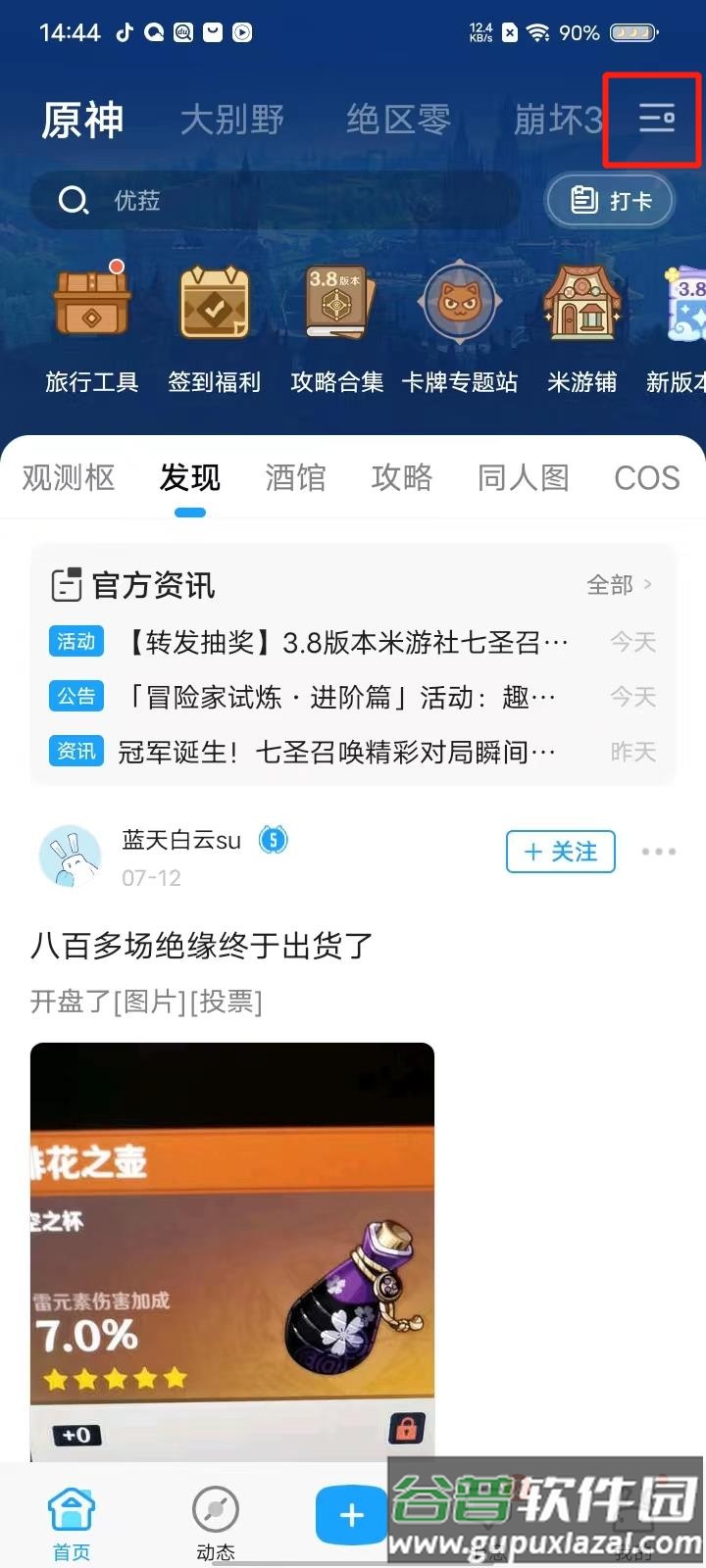 2、选择完成后若需要调整,可通过首页设置功能随时修改关注的游戏频道。页面右上角的齿轮图标就是设置入口。