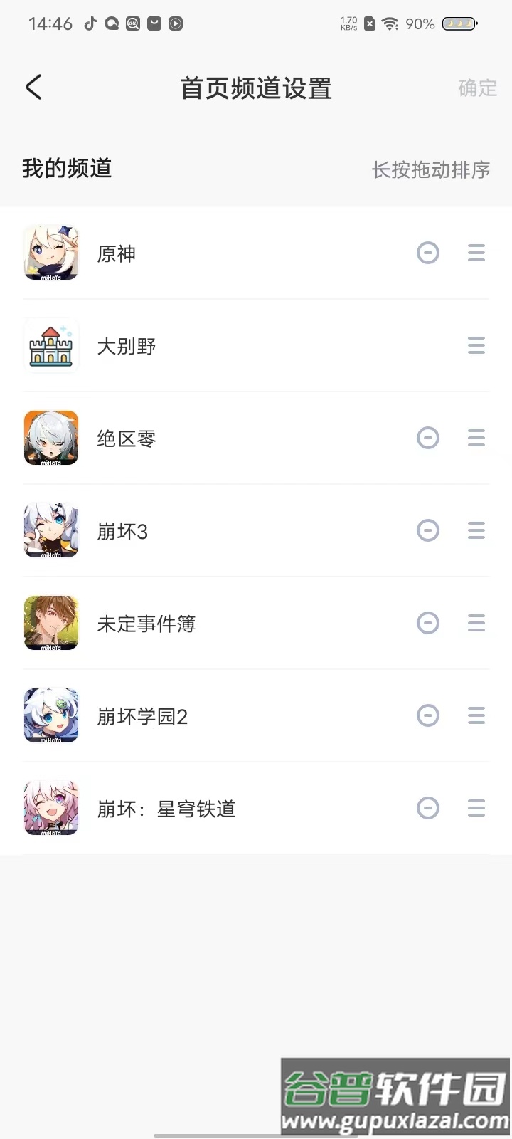 3、进入频道管理界面后,可以通过拖拽调整首页展示顺序,确认后保存设置。