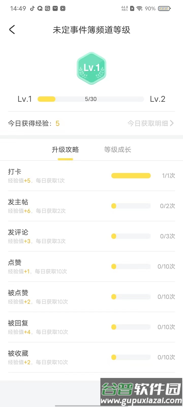 6、完成签到后可查看当日社区任务进度,及时了解经验值获取情况。