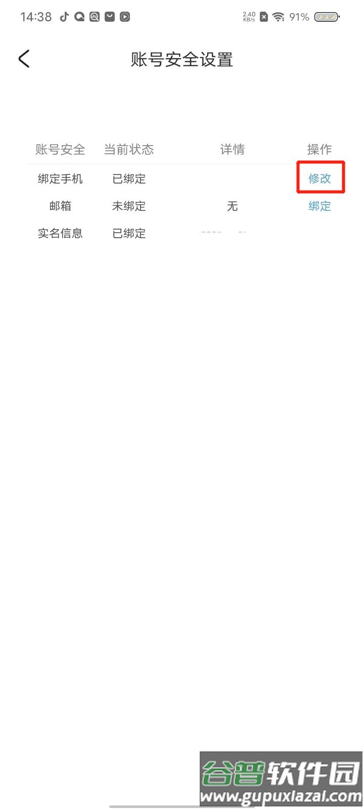 4、找到手机号绑定信息,点击修改按钮按照提示完成验证操作。