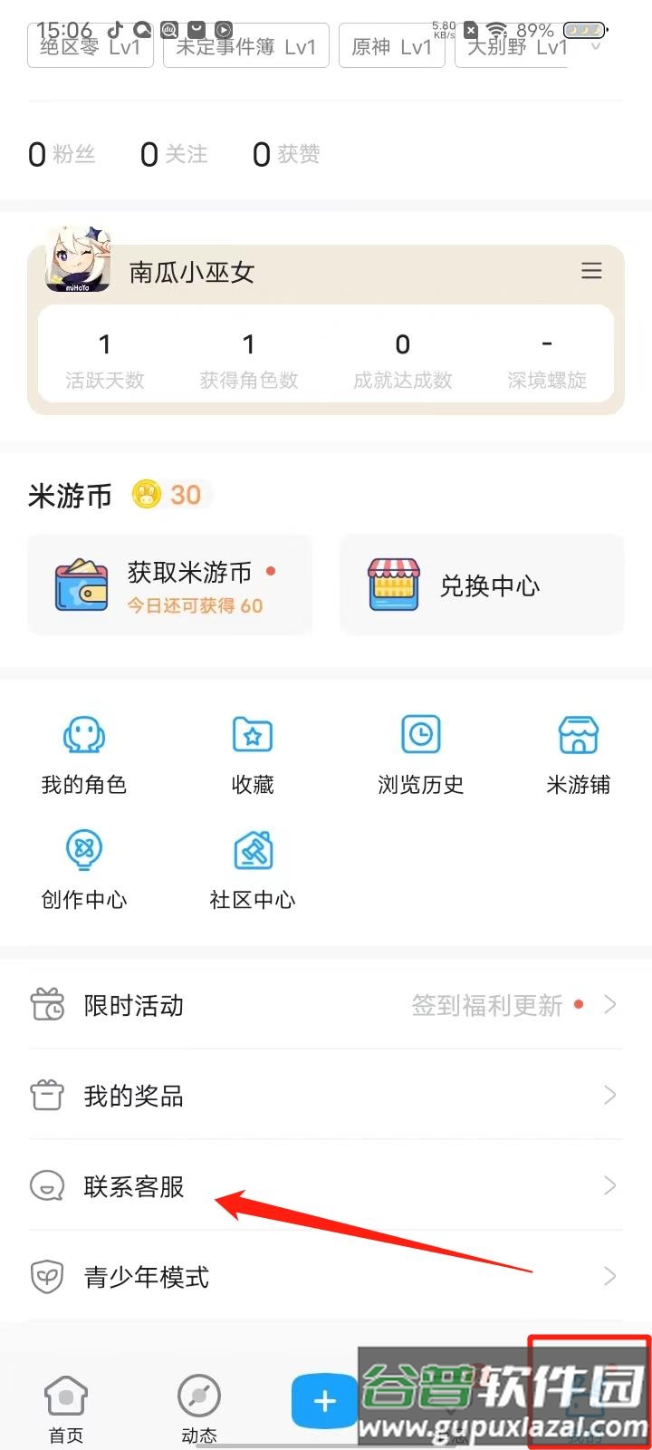 1、进入应用后切换到我的页面,在菜单列表中找到联系客服选项。