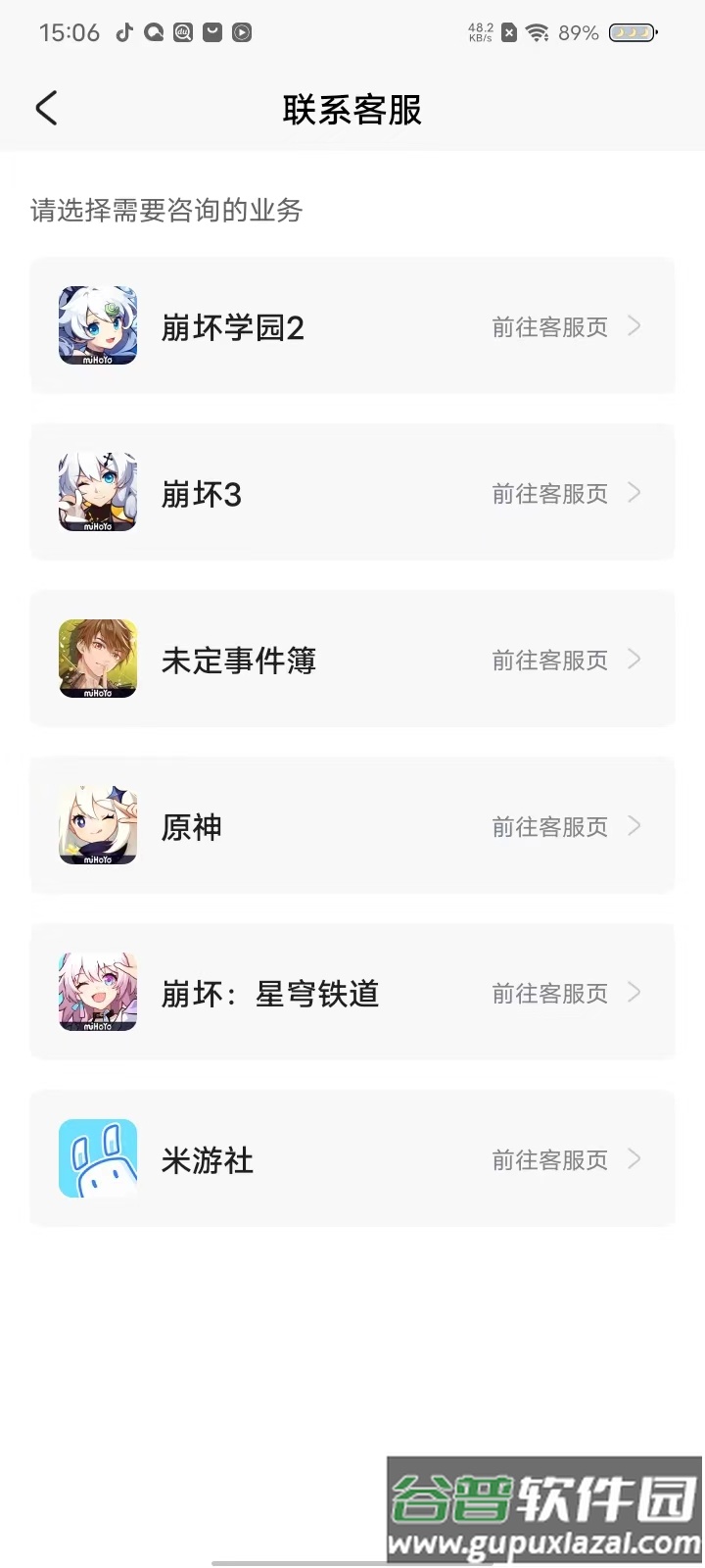 2、根据问题类型选择对应游戏项目,跳转至专属客服对话窗口。