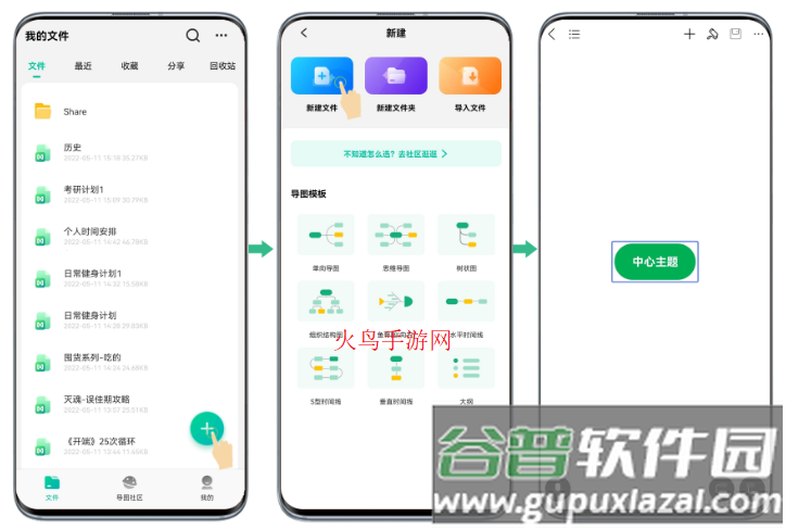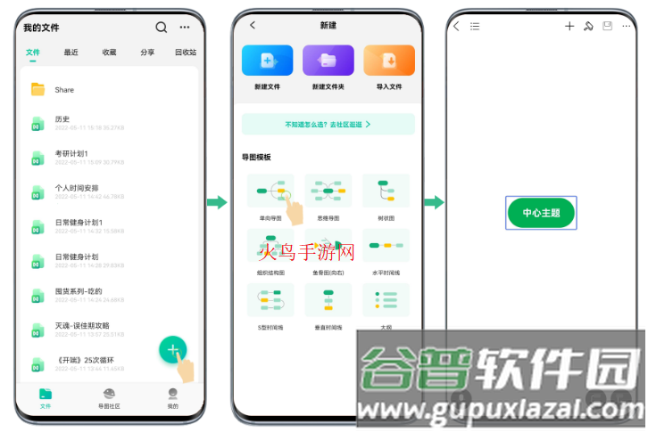 2. 新建画布方式一:点击界面右下角加号,从导图模板库中选择模板创建;