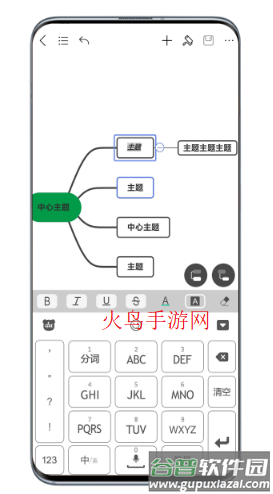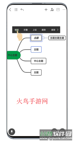 4. 编辑操作:进入画布后,上方工具栏提供退出、大纲、插入元素与主题格式设置等功能,下方工具栏包括语音输入、新建主题等操作,双击空白区域可添加浮动主题。