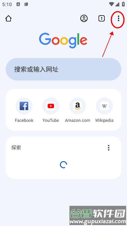 在手机谷歌浏览器中关闭无痕浏览,首先点击首页右上角菜单进入设置界面;