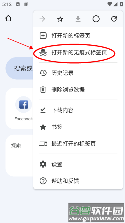 接着选择“打开新的无痕式标签页”,即可进入无痕浏览状态;