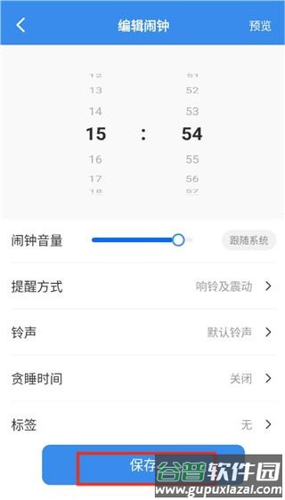 3、设置闹钟类型、铃声与贪睡时长后保存即可完成添加。