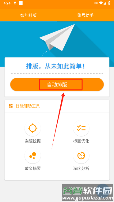 1、打开软件后点击自动排版功能